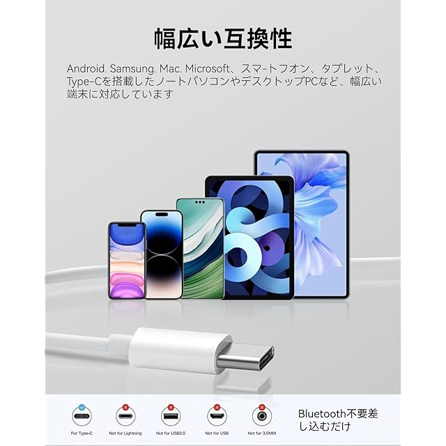 【2025新版Type-Cイヤホン】有線接続ならではの確かなメリットをご提供。煩わしい充電が不要なため、「電池切れ」の心配は一切無用。いつでも即座にご使用いただけます。さらに、Bluetoothに起因する音声遅延(レイテンシー)が皆無なので、動画鑑賞やゲームプレイにおいて、音と映像が完璧に同期。快適な没入感を実現します。電波干渉や接続断のリスクも回避でき、安定した高品質な音声伝送を。シンプルでありながら、確実性とリアルタイム性を求める方、特に通勤・通学や重要なオンライン会議、ゲームなどで確かな接続を求められるユーザー様に最適です。Type-Cインターフェースを搭載しているため、およびすべてのType-Cインターフェース搭載デバイスに対応しています。
