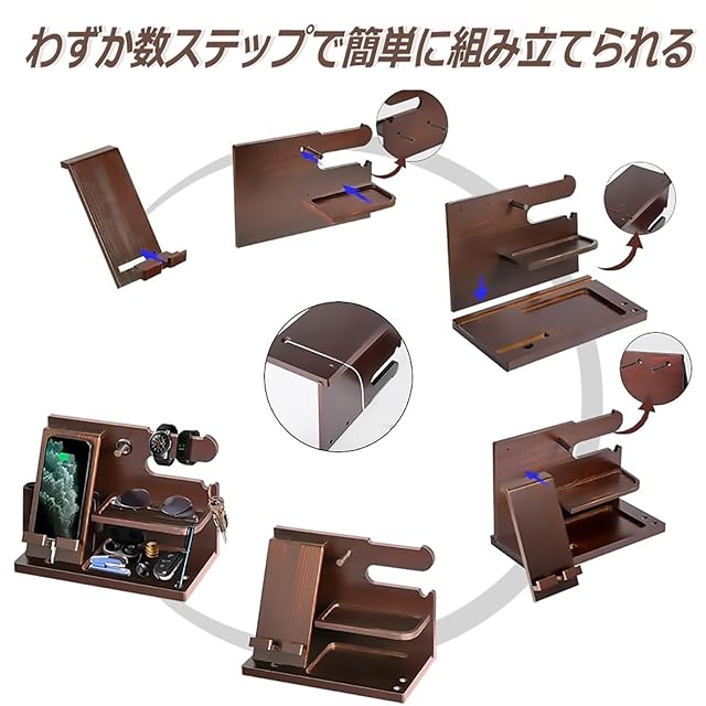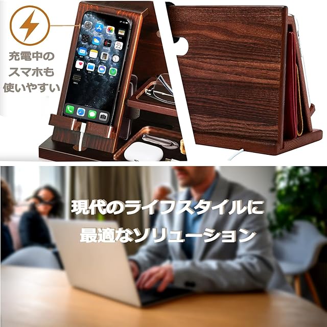 【もう散らからない】スタイリッシュな木製スタンドはガジェットにぴったりです。 財布、鍵、スマホ、時計、メガネなど、日常のすべてのアイテムを1つの場所に保管できる十分なスペースがあります。すべてが整っており、足りないものは何もない。