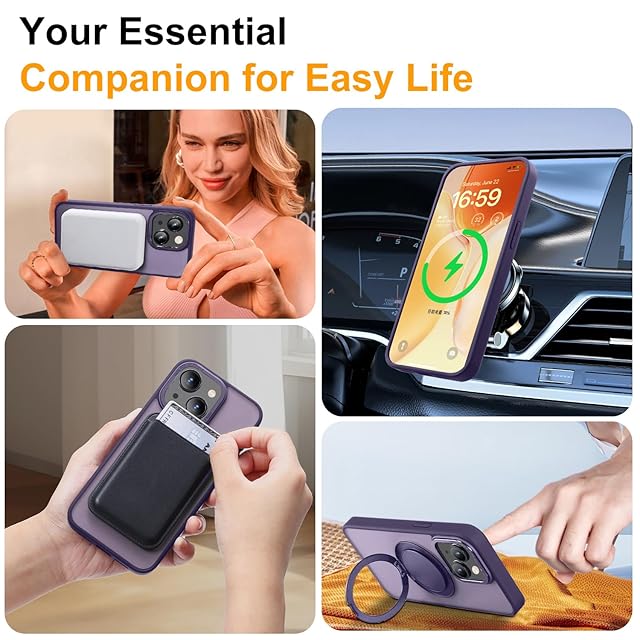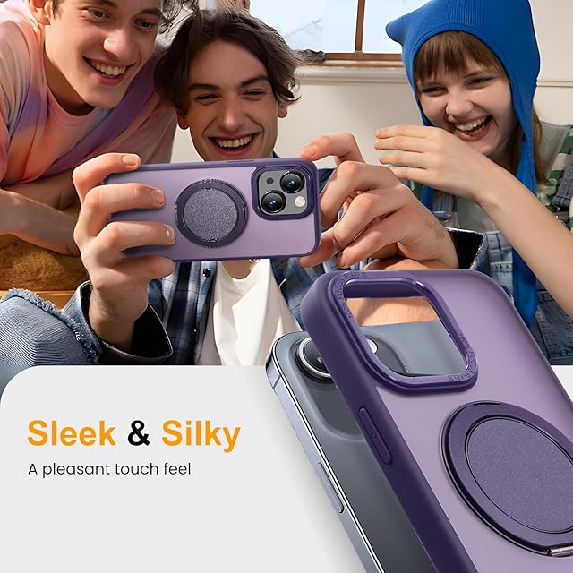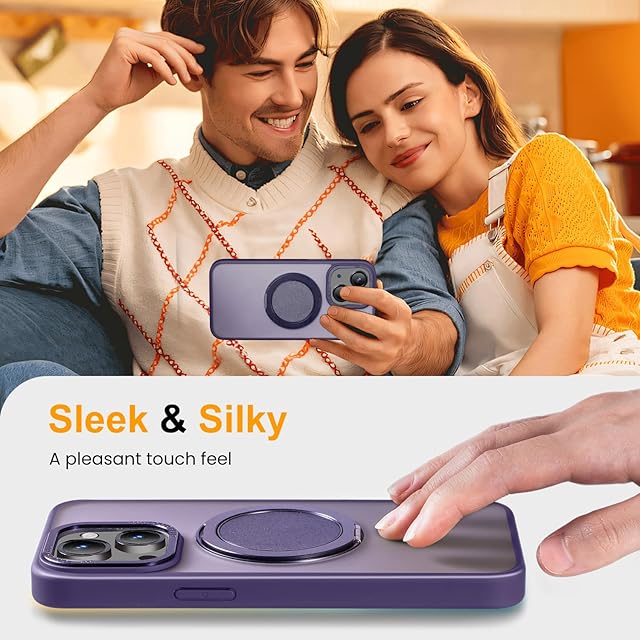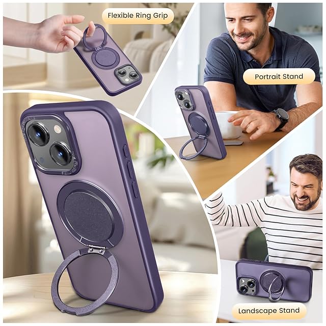 【Magsafe対応・スタンド付き】Mcoifull iPhone14 ケース iPhone13 ケース マグネット搭載 ワイヤレス充電 耐衝撃 マット感 半透明 指紋防止 アジャスタブルスタンド アイフォン14 ケース アイフォン13 ケース むらさき | TREND DESIGN 家電専門店