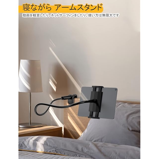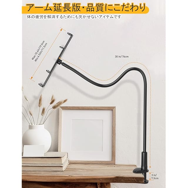 商品名:【76CM 初登場】 タブレット&スマホ 両用 スタンド 寝ながらタブレットスタンド 全機種対応 iPhone&iPad スタンド スマホスタンド タブレットスタンド アームスタンド 寝ながらスマホスタンド 携帯 スマホアーム 360自由回転 土台強化 安定性 フレキシブルアーム付き 柔軟自由調節 幅広い互換性 4-10.6インチ 手帳型ケースにも対応可能 黒