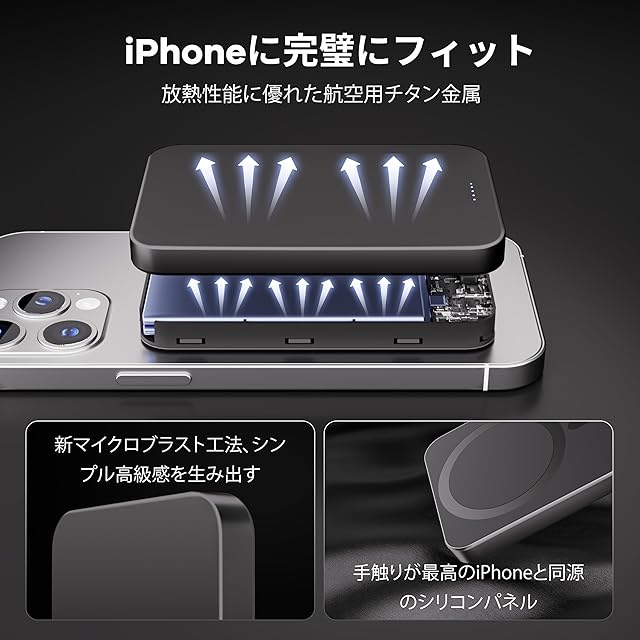 商品名:【業界初のチタン金属・14mmの超薄型】Yamisan Magsafe対応 モバイルバッテリー 10000mAh 軽量 PD20W急速充電 マグネット式 ワイヤレス充電器 スマホ充電器 大容量 両台同時充電 Type-C入出力兼用 マグセーフ充電器 iPhone16/15/14/13/12シリーズ対応 コンパクトで機内持ち込み可 旅行/出張/災害用 PSE認証済み(チタンブラック)
