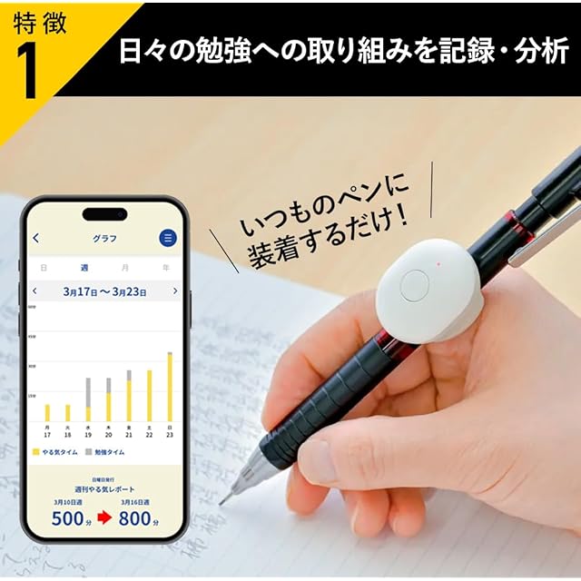 いつものペンにセットするだけで、勉強への取り組みを記録・分析。