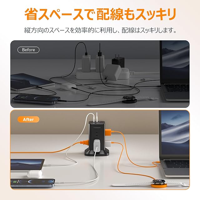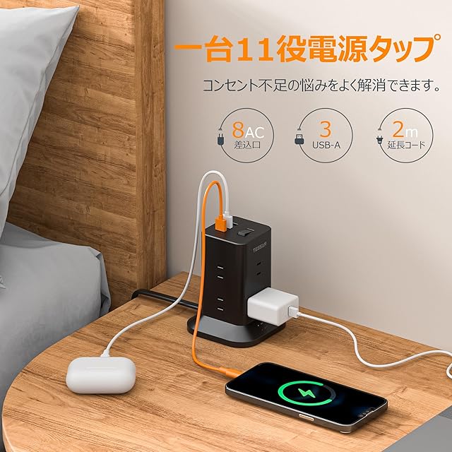 これは8個のac差込口、3個のusb-aポートを搭載しているusb コンセントです。これ1つのAC タップで、11台の機器を同時に充電できます。また、このOA タップはUSBポートを搭載しているので、スマートフォンやタブレットなどの多機種の電子機器への充電ができます。安全材料で作られて、お客様に安全便利さを提供します。1500Wの合計最大出力で、宅内のリビング、キッチン、ベッドサイドやトイレなどの様々な場所にご利用頂けます。