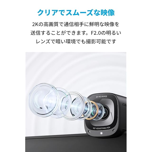 自分好みにカスタマイズ:専用のAnker Workソフトウェアを使用して、最大95°の視野角調整、画像の明るさやコントラストの調整、マイクの指向性などを自由に調整可能。