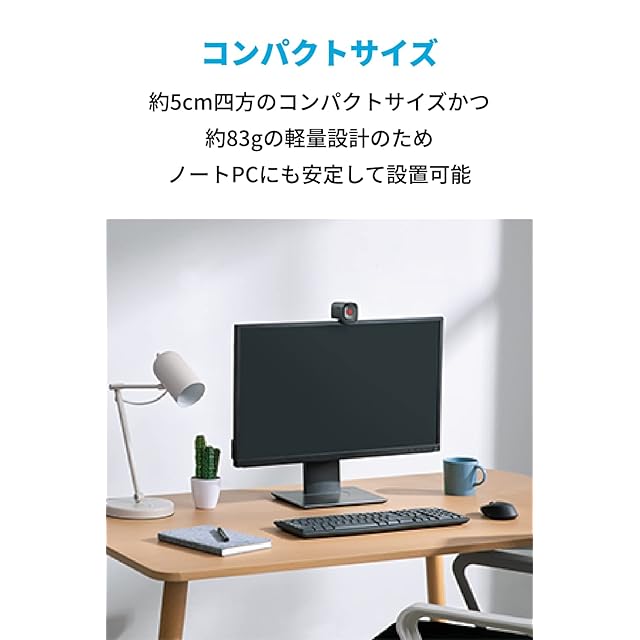 コンパクトサイズ:カメラ部分のサイズは約5センチ四方のコンパクトサイズかつ、約83グラムの軽量設計のためノートPCにも安定して設置可能。自宅のミニマルなワークスペースでも圧迫感なく設置できるほか、外への持ち運びにも最適です。<br>クリアでスムーズな映像:2Kの高画質で通信相手に鮮明な映像を送信することができます。多くの光を取り込めるf/2.0の明るいレンズにより、暗い環境でも細部まで明瞭に撮影することが可能です。また、特別な操作なく被写体に自動でピントを合わせるオートフォーカス機能も搭載しています。カメラを使用しないときはレンズを物理的にカバーすることができるプライバシーシールドを搭載しているため、不要な映り込みを防ぐことができます。<br>優れた音声処理機能:本体に2台のマイクを搭載したデュアルマイク構造を採用し、話し声やインターホン等の環境雑音を自動で調節する「ノイズリダクション機能」や音声の入力ボリュームを自動で調整する「オートゲインコントロール機能」を搭載。通信相手への均一でクリアな音声送信を実現しました。ストレスの無いオンライン会議やオンライン授業をサポートします。<br>専用ソフトウェアでカスタマイズ:専用のAnker Work ソフトウェアをPCにダウンロードすると、最大95°までのカメラの画角調整が可能になるほか、画像の明るさやコントラストの調整などを自分好みに細かくカスタマイズすることができます。<br>パッケージ内容:Anker PowerConf C200、USB-A & USB-C ケーブル、クイックスタートガイド、安全マニュアル