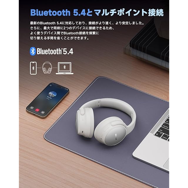 【Bluetooth 5.4&マルチポイント接続】 最新のBluetooth 5.4に対応し、接続性と安定性がさらに向上しました。最大2台のデバイスに同時接続できるため、頻繁にデバイス間を切り替える手間なくご利用いただけます。
