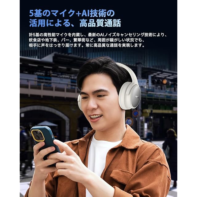 【5基のマイク&AI技術によるクリアな通話】 計5基の高性能マイクを内蔵し、最新のAIノイズキャンセリングに対応しました。飲食店、地下鉄、バー、繁華街など、騒がしい環境でも相手に自分の声がしっかり届く、クリアで高品質な通話を実現します。