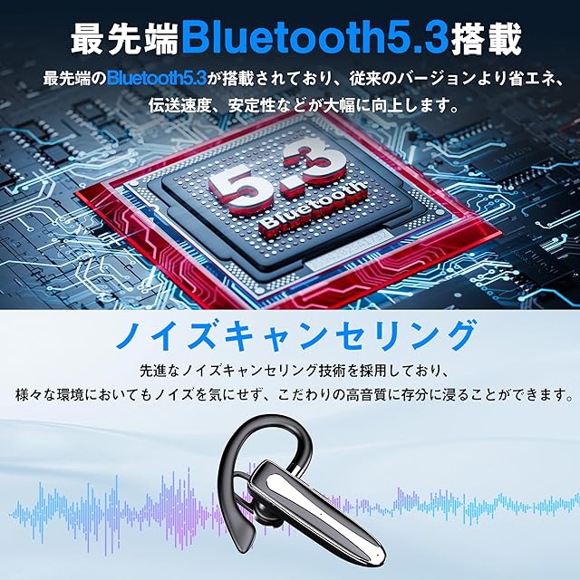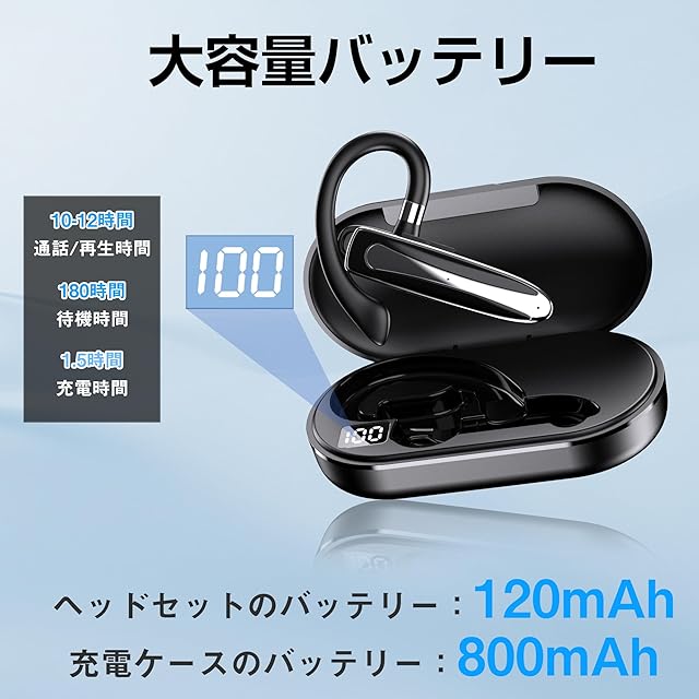 商品名:【新登場】Bluetoothヘッドセット Bluetoothイヤホン Bluetooth5.3 片耳 耳掛け式 最大96時間連続使用 LEDバッテリー残量ディスプレイ ハンズフリー通話 充電ケース付き ミュート機能 SIRI対応 iOS/Android対応 2台同時接続 運転/在宅勤務/テレワーク/LINEチャット/zoom会議 夏のギフト ブラック