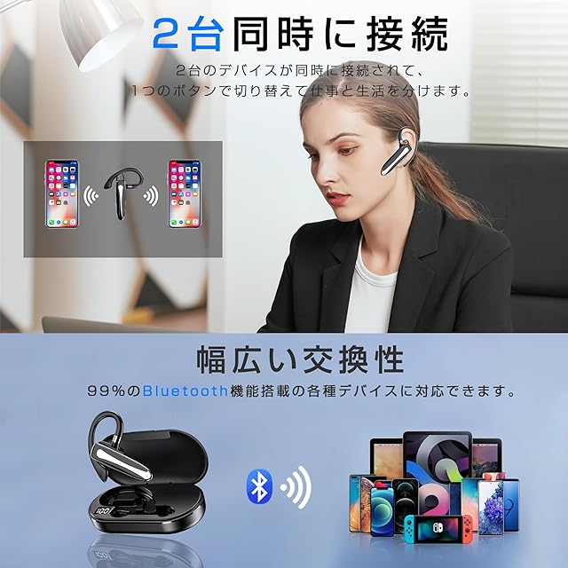 【2台同時接続&幅広い交換性】:同時に2台のデバイスに接続できるマルチポイント機能が搭載されており、1つのボタンで切り替えて仕事と生活を分けます。iOS、Android、PC、TVなどのほとんどのBluetooth対応の設備と交換性があります。(ご注意:2台のデバイスに同時に接続できますが、同時に2台のデバイスを使用することはできません。同時接続中は、一つのデバイスのみ使用可能ですが、接続されている別のデバイスに自由に切り替えることができます。)