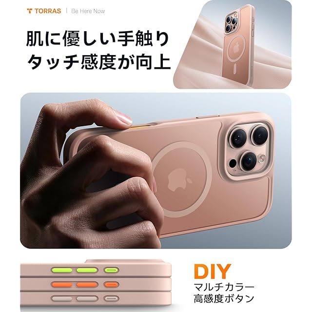 商品名:【デザートチタニウム専用色・Magsafe対応】TORRAS iPhone 16 Pro Max 用 ケース 半透明 マグネット搭載 耐衝撃 マット感 黄ばみなし ストラップホール付き ワイアレス充電対応 6.9インチ ローズゴールド
