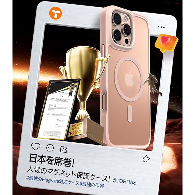 【本当!? 特許取得のマグネット!これが驚異の安定性!】軽く吸着し、瞬時に強力かつ精密にフィットする!TORRAS特許技術に基づく N52 マグネットは最適な配列で設計されており、他のケース磁石と比べて 40%も強い。ワイヤレス充電から車載ホルダーまで、幅広いMagSafe アクセサリーと簡単に互換性がある。どんな揺れにも強く、しっかり固定されるから、簡単には外れない!対応機種:iPhone 16 pro max 用 ケース