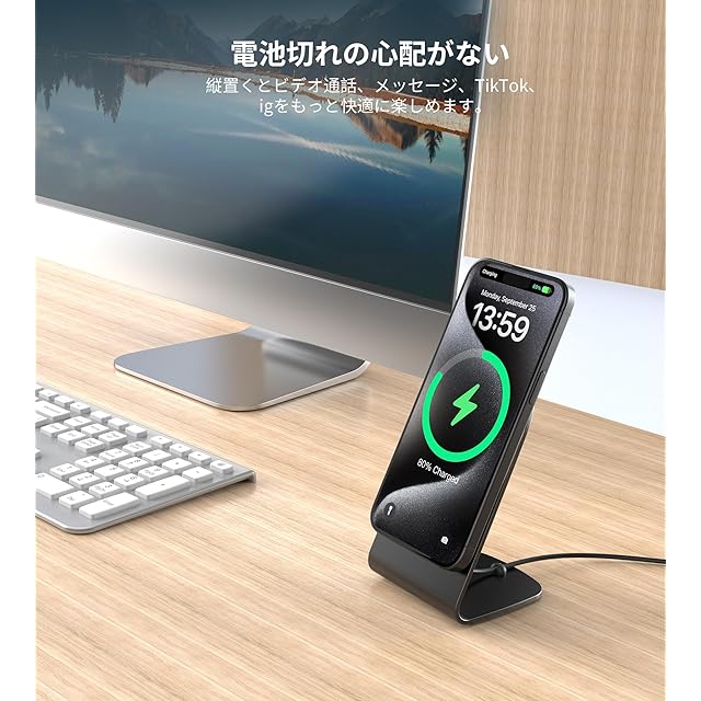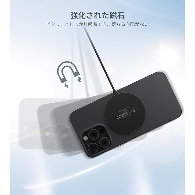 【優れた安全保護・効率的に急速充電】iPhone16/15 /14/13/12を0から100%まで2〜3時間で充電できます。アップル社のワイヤレス充電器とほぼ同じな時間がかかります。インテリジェントETL認定チップの安全保護システムは、過充電、過電流、過電圧、過熱、およびショートを防止します。アルミニウム合金の金属本体で、急速充電中にも熱を迅速に発散できます。