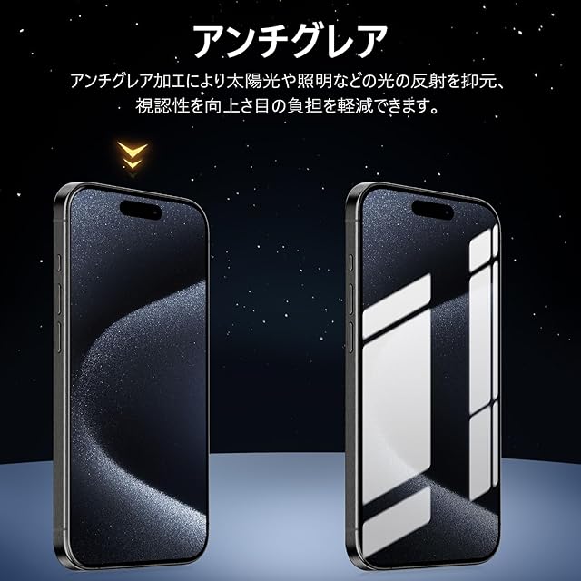 【アンチグレア・指紋防止・高感度タッチ】 アンチグレア(非光沢)タイプのさらさらで快適な操作感。光の反射を軽減し、より目に優しくちらつきを抑えます。同時に、iPhone15プロ ガラスフィルムには撥油コーティングが施されており、指紋や汚れなどに強くなめらかな操作感を実現、付着した汚れなどは簡単に拭きとれます。こちらは高耐久撥油コーティングが施され、つるつるな滑り感を実現!ゲームをする人におすすめです。