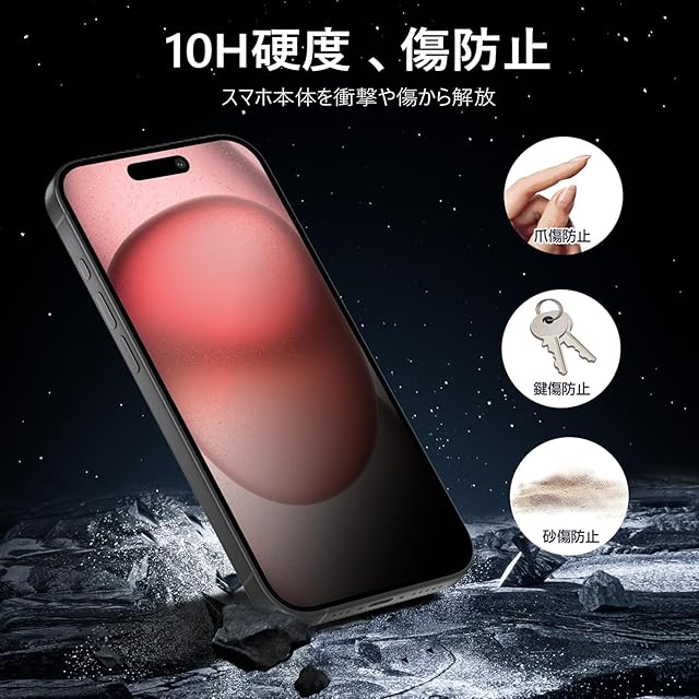 【10H硬度・高品質素材】 MINIKAのいPhone 15 Plus フィルム。10H硬度ガラスを採用し、ハードコーティング技術により外部からの衝撃を吸収し、画面へのダメージを可能な限り抑えます、スクラッチ防止。【製品の特徴】 全面保護/気泡なし/耐衝撃/剥がれない/綺麗/割れない。