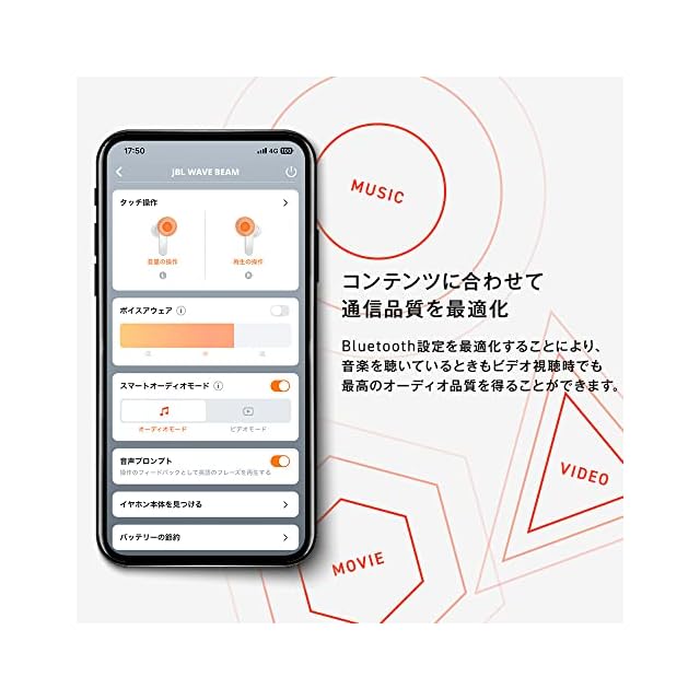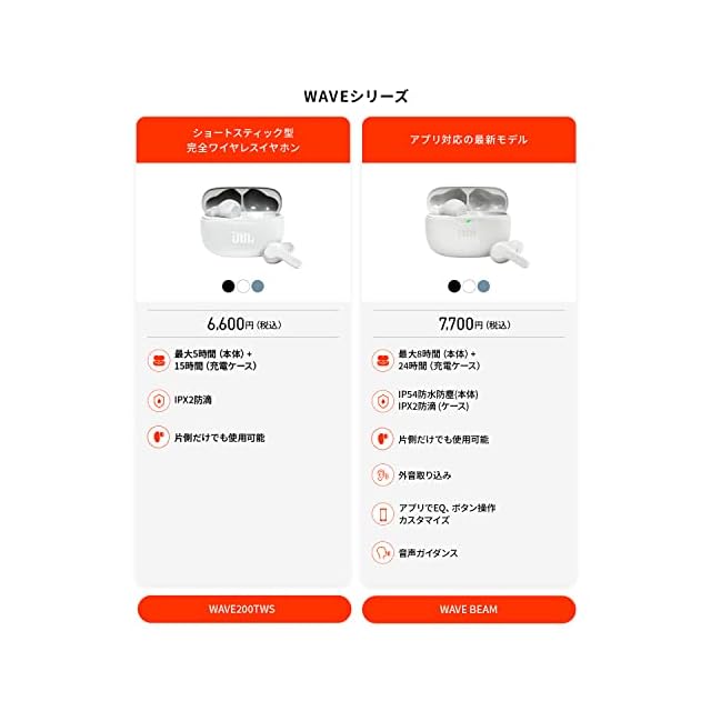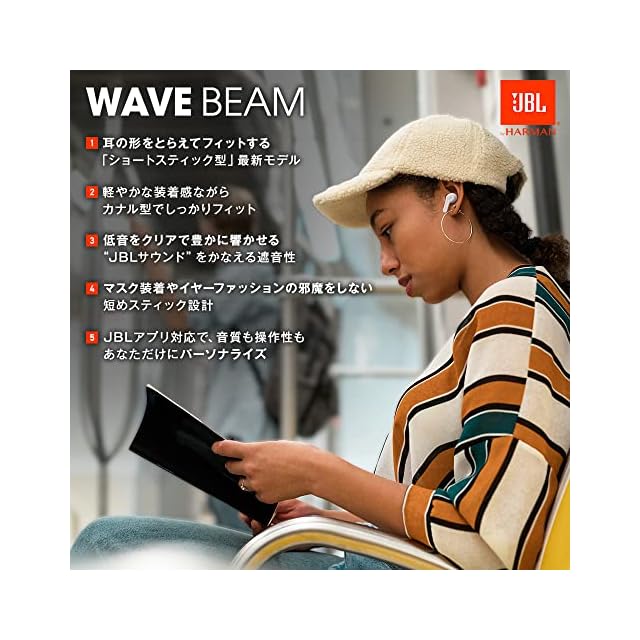 商品名:【JBL公式限定】JBL WAVE BEAM 完全ワイヤレスイヤホン IP54防水防塵 外音取込 BASSサウンド アプリ Bluetooth (ホワイト)