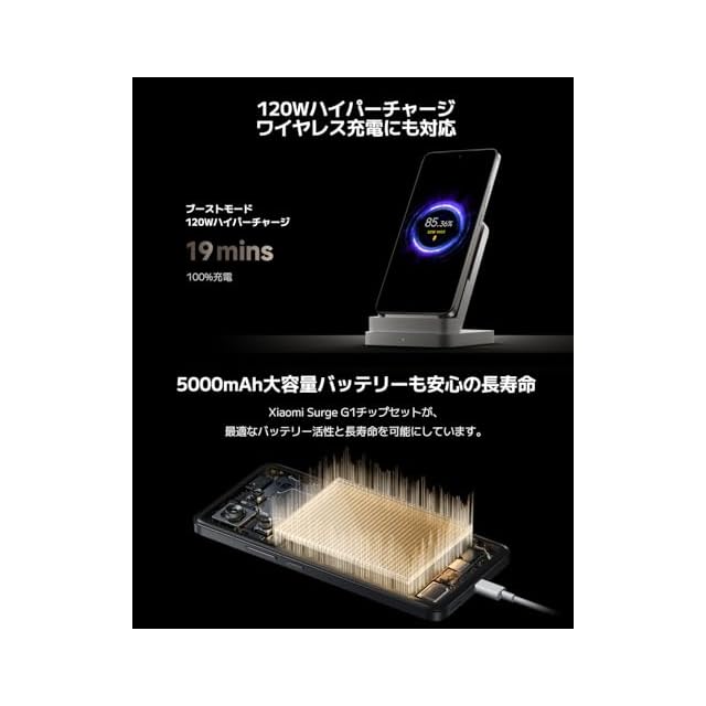 【わずか19分で100%までの超急速充電に安心の長寿命バッテリー】薄型軽量化した本体に5000mAhの大容量バッテリーを内蔵。バッテリー切れしても、わずか19分で100%まで充電することが可能。さらに、充電回数(充電サイクル)が1600回に達しても80%の最大容量を維持できますので、長寿命で安心です。