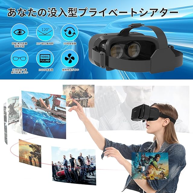 【120°超広角&1080P高画質】このVRゴーグルを使用する時、視野角120度広い(視野角の広さは首を動かずに観賞ことができる視界の範囲を指します)、目に映る映像の範囲が広くなり、視角も広くなり、全面的に映像を感じることができます。視野が広く、映像をより鮮明にし。同時に業界トップな1080PHD高画質を感じることができます。臨場感抜群です!