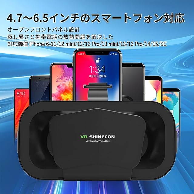 【心地良い装着感&ンチ幅広い機種対応】弊社の技術部や生産部は長い時間の研究で、より良い使用体験を提供、直接に目に当たる部分は顔に跡が付きにくいPUクッションを採用し。重量はわずか約205g本体、長時間使用しても首に負担がかからない上で、首や頭が疲れが減少できます。4.7~6.5インチまでのスマホほぼ全機種対応、androidでもIOS機種でも。普通より小さいサイズか大きいサイズにもスマホでも簡単に調整することができます。