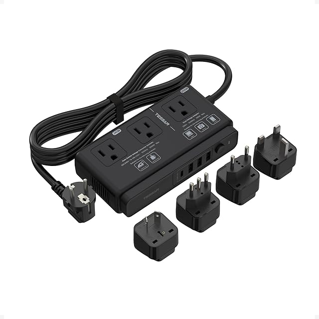 変圧器 海外旅行用 220vから100v TESSAN 4USBポート(1USB C) 変換プラグ C BF O Lタイプ SEタイプ プラグ延長コード付き 韓国 ヨーロッパ タイ中国 オーストラリア シンガポールなどへ用海外変圧器 ブラック | TREND DESIGN 家電専門店