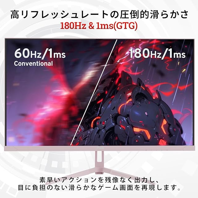 【画面】 27インチ / Fast IPSパネル / 180Hz / 1ms(GTG) / WQHD(2560×1440) / sRGB 135.76% / 非光沢
