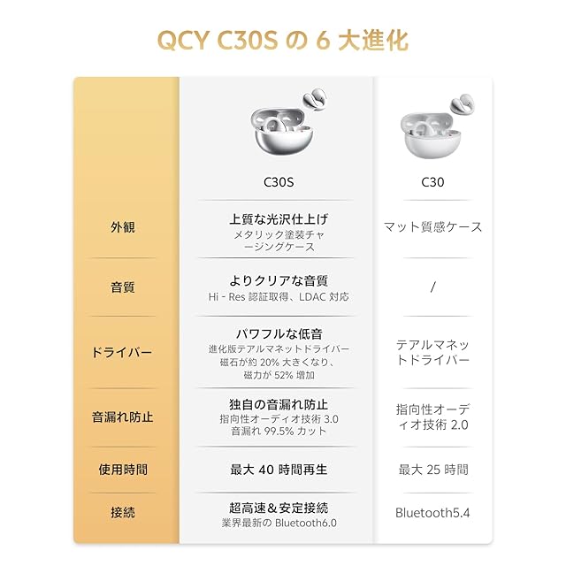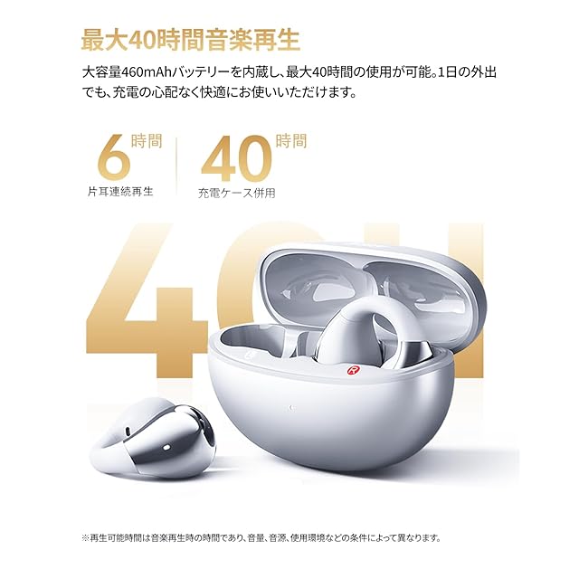商品名:QCY Crossky C30S イヤーカフ イヤホン オープンイヤー ワイヤレスイヤホンHi-Res・LDAC認証 Bluetooth 6.0 低遅延モード 最大40時間再生 急速充電 360°空間オーディオ マルチポイント対応 IPX5防水 アプリ対応 技適認証取得 シルバー