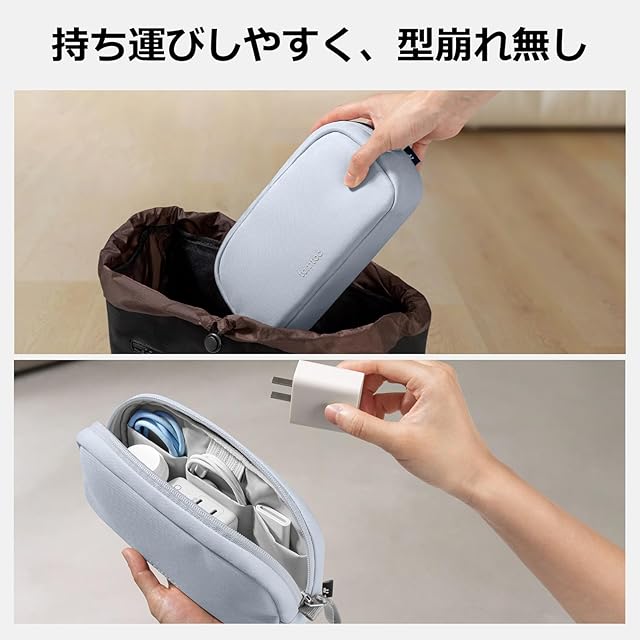 【ポーチ1つで全てを】Light-T12 ポータブルガジェットポーチは、日々や旅行の必需品をまとめてすっきり収納するソリューションを提供します。さまざまな小物を散らかりや紛失なしに、いつでも手が届き、整頓された状態をキープ。すべて一つの場所にまとめて、素早く持ち物をまとめて出かけたいときに活躍し、すっきり持ち運ぶことができます。外形寸法:23.5×12×6.5cm。