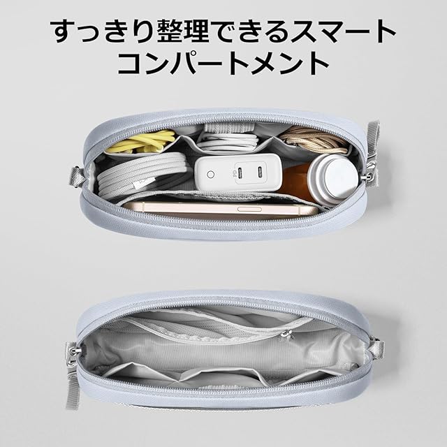【ポーチ1つで全てを】外形寸法:23.5×12×6.5cm。Light-T12 ポータブルガジェットポーチは、日々や旅行の必需品をまとめてすっきり収納するソリューションを提供します。さまざまな小物を散らかりや紛失なしに、いつでも手が届き、整頓された状態をキープ。すべて一つの場所にまとめて、素早く持ち物をまとめて出かけたいときに活躍し、すっきり持ち運ぶことができます。<BR/>【整頓しやすい構造】小物をすっきり収納できるように、程よい数のポケットを配置しました。自宅でも外出先でも、ハイテクガジェットはもちろん、個人アイテムやモバイルアクセサリーなどの必需品をいつでも手の届く場所にきちんと収まります。<BR/>【万能ポーチ】この小物入れは多用途にご利用いただけます。ハイテクガジェットをたくさん持ち運ぶ方々だけではなく、鍵、リップクリーム、イヤホン、ミントタブレットなどごちゃごちゃしがちな身の回り品もすっきり収納してます。仕事に向かうときでも、旅行に行くときでも、いつでもどこでも、迷わず取り出します。<BR/>【環境にやさしい】再生素材のPET 600Dポリエステルを使用したこのバッグは、美しさや耐久性、機能性を重視していることだけではなく、品質や地球を守ることにも全力で取り組んでいます。<BR/>【持ち運びやすい便利グッズ】複数のバッグポケットにバラバラに収納された小物アイテムを探す邪魔を軽減させるために設計したこのガジェットケースは、リュックサック、トートバッグ、スーツケースの中に入れて持ち運ぶこともできます。自立できる洗練された仕様で、中身を見渡しやすく取り出しやすいのも魅力。