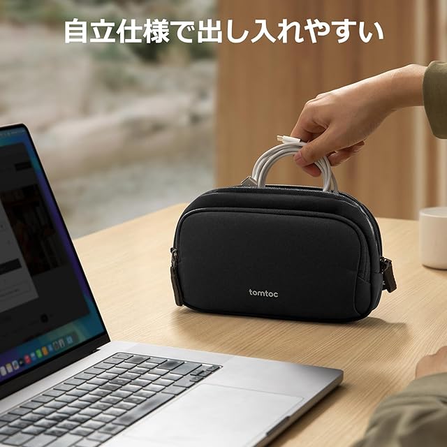 商品名:tomtoc ガジェットポーチ 大容量 トラベルポーチ PC周辺小物収納ポーチ 小物入れ バッグ ケース ケーブル アダプタ モバイルバッテリー マウス収納 出張 お出掛け オフィス 旅行 便利グッズ バックインバッグ 二層 自立 撥水 軽量 ブラック