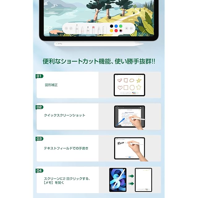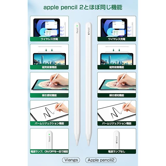 【対応機種・安心なる】Viangs吸着充電ipadペンシルはiPad Pro 12.9”第3/4/5/6世代、iPad Pro 11”、iPad Air第4/5世代、iPad mini第6世代に対応します。Viangs iPad ペン は、2年間の長期が付いています。無期限のカスタマーサポートで、ご不明な点がありましたら、弊店にご連絡頂ければ直ちに対応致します。【パッケージ内容】iPad タッチペン*1 、静音ダンピングペン先*1 、金属製ペン先*1、日本語取扱説明書*1