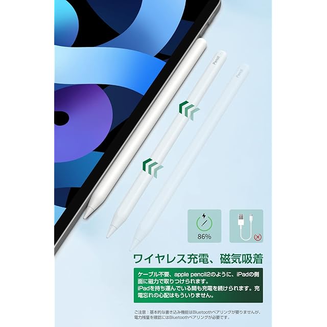 商品名:【正規認証品 ワイヤレス充電】アップルペンシル Viangsタッチペン ipad ペン 磁気充電 apple pencil互換スタイラスペン 超高感度 極細 0遅延 ペンシル 傾き感知/誤作動防止/磁気吸着充電対応 タッチペン タブレット用 (ホワイト)