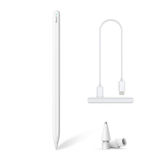 【正規認証品 ワイヤレス充電】アップルペンシル Viangsタッチペン ipad ペン 磁気充電 apple pencil互換スタイラスペン 超高感度 極細 0遅延 ペンシル 傾き感知/誤作動防止/磁気吸着充電対応 タッチペン タブレット用 (ホワイト)