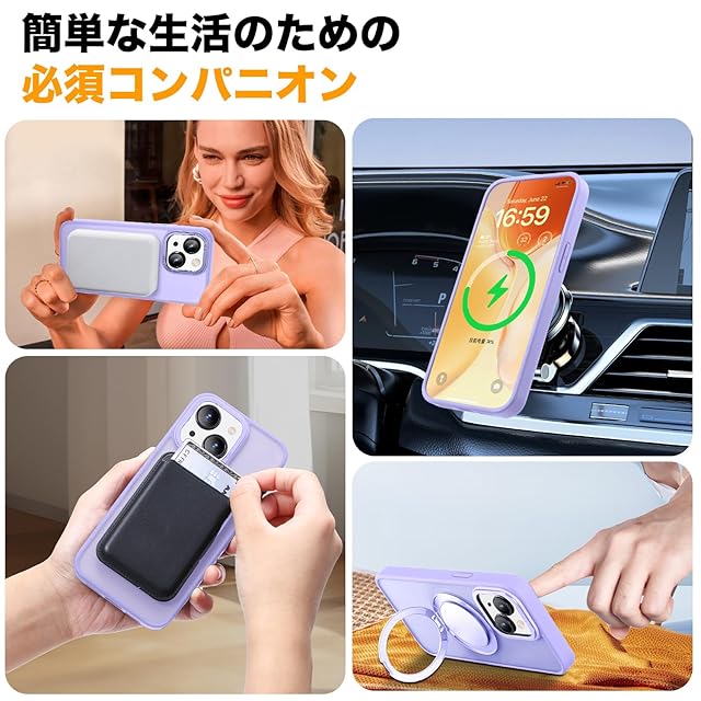 【MagSafe対応】アイフォン14 ケース/アイフォン13 ケースをつけたままマグセーフ機能を快適に使用できます。背面に薄くて強いマグネット内蔵しています、ワイヤレス充電や車載ホルダーやアクセサリとのあらゆる充電に安定で接着ができ、差し込みのいらないより簡単により素早く充電できます