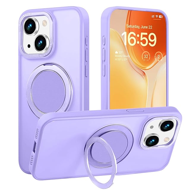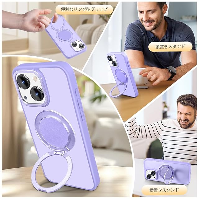 【Magsafe対応・スタンド付き】Mcoifull iPhone14 ケース iPhone13 ケース マグネット搭載 ワイヤレス充電 耐衝撃 マット感 半透明 指紋防止 アジャスタブルスタンド アイフォン14 ケース アイフォン13 ケース ライトパープル | TREND DESIGN 家電専門店
