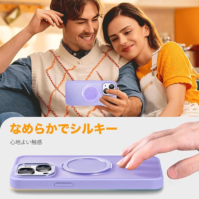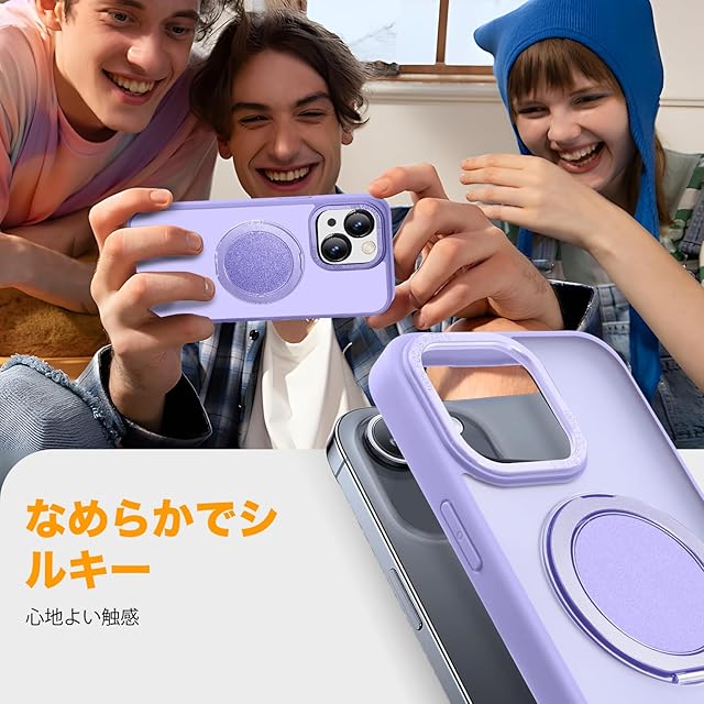商品名:【Magsafe対応・スタンド付き】Mcoifull iPhone14 ケース iPhone13 ケース マグネット搭載 ワイヤレス充電 耐衝撃 マット感 半透明 指紋防止 アジャスタブルスタンド アイフォン14 ケース アイフォン13 ケース ライトパープル