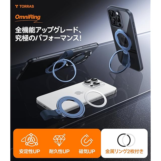 商品名:【2025革新・耐久性進化】 TORRAS スマホリング Magsafe対応 マグセーフ リング 薄型 iPhone 16 対応 両面マグネット式 肌触りのシリコンバンド 落下防止 磁気増強 角度調整可能 高耐久 多機能リング Magnetic バンカーリング スマホグリップ メタルリング付き 携帯リング スマホスタンド iPhone用 全機種対応 OmniRing (ダークブルー)