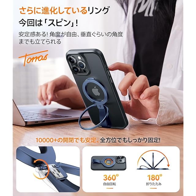 【横縦両立も揺るぎない、最高の視聴体験!】ビデオ視聴に最適な角度が見つからないですか?TORRAS多機能スマホリングなら、360°回転、180°折りたたみが可能で、縦置き・横置き、自由自在に角度を調整し、ベストな角度を簡単に見つけられます!10000回以上の開閉テストでも変わらぬ安定性で、リングの緩みとも無縁です。リングとスタンドが一体化し、5G時代に最適なビデオ視聴、リモートワーク、オンライン授業をサポートします。iPhone 16 等の最新スマホと組み合わせて、いつでもどこでも大画面スマホを快適に楽しむ、新たな自由をあなたの生活に!
