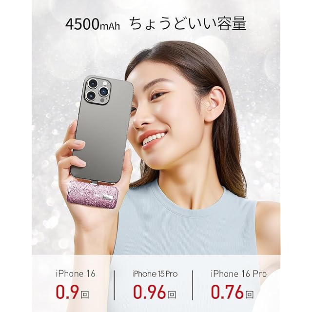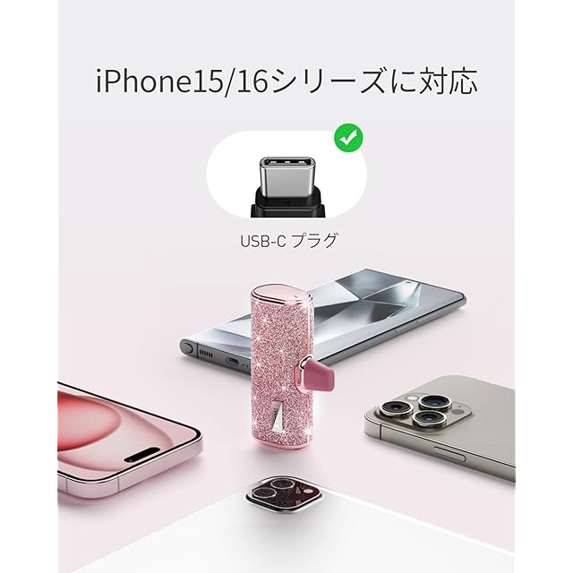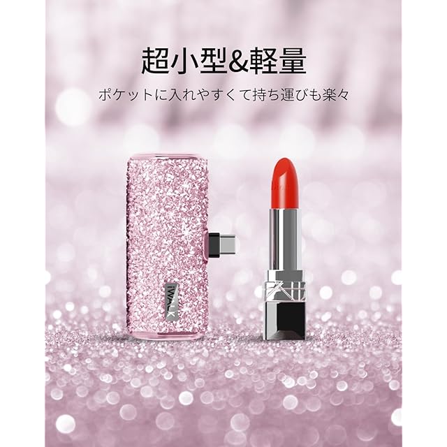 商品名:iWALK モバイルバッテリー 超小型 軽量 きらめくかわいいモバイル充電器 USB Type-C 直接充電 コネクター内蔵 コードレス 4500mAh コンパクト おしゃれ iPhone15/16シリーズ iPad AirPods Android対応 ギフト プレゼントとしてもぴったり PSE認証済 ピンク