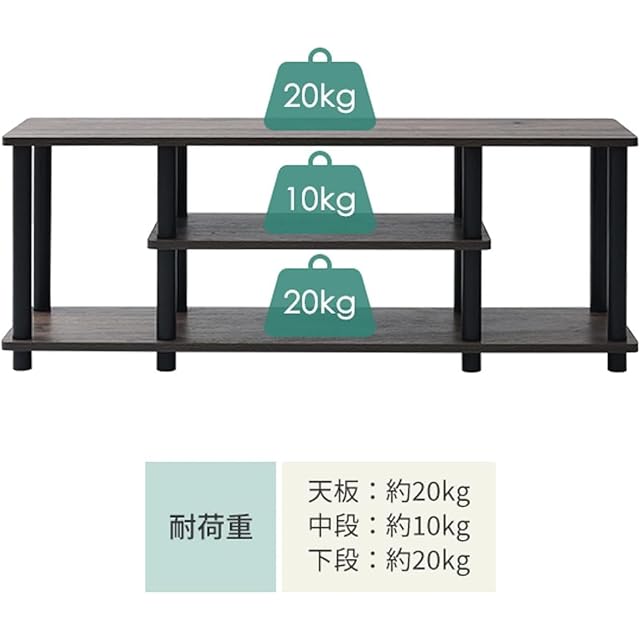 耐荷重:天板約20kg、中段約10kg、下段約20kg