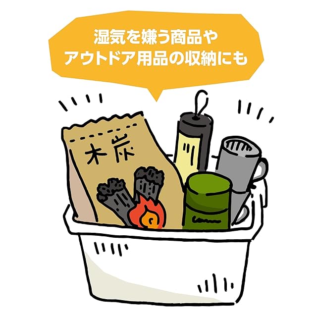 カメラやレンズなどの精密機器やキャンプ用品など、湿気に弱いものの収納に便利。