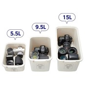 一眼レフカメラの収納に丁度よい、深さのある容量9.5リットルサイズ。 乾燥剤「キングドライ(15g×2入)」付属。