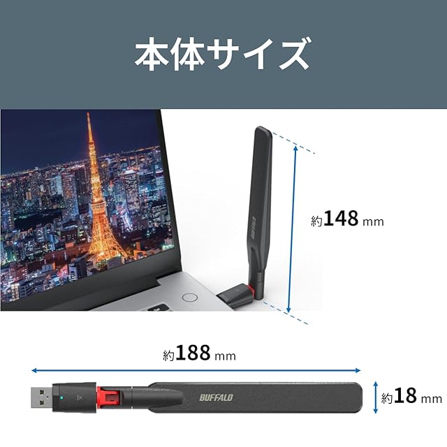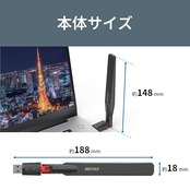 商品名:バッファロー WiFi 無線LAN 子機 アダプター 外付けアンテナ 866Mbps/433Mbps 11ac/n/a/g/b USB 3.2 Gen1 WPA3 WI-U3-866DHP/N