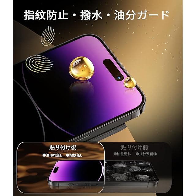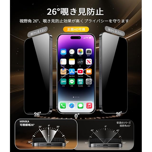 商品名:MINIKA iPhone 14 Pro ガラスフィルム 覗き見防止 + アンチグレア 2in1 いPhone14Pro フィルム のぞき見防止 さらさら アイフォン14プロ 保護フィルム プライバシー 横から見えない 指紋防止 一体式ガイド枠付き 超簡単貼り付け 自動位置決め iPhone 14Pro カメラフィルム 付き「2枚セット」