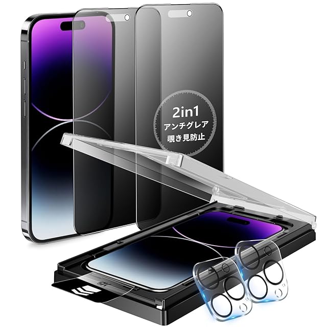 MINIKA iPhone 14 Pro ガラスフィルム 覗き見防止 + アンチグレア 2in1 いPhone14Pro フィルム のぞき見防止 さらさら アイフォン14プロ 保護フィルム プライバシー 横から見えない 指紋防止 一体式ガイド枠付き 超簡単貼り付け 自動位置決め iPhone 14Pro カメラフィルム 付き「2枚セット」 | TREND DESIGN 家電専門店