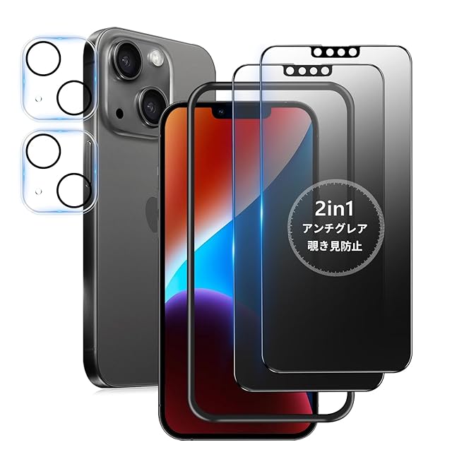 【覗き見防止 + アンチグレア / 2枚セット】 iPhone 14 Plus ガラスフィルム 覗き見 さらさら いPhone14Plus 保護フィルム サラサラ アイフォン14プラス 覗き見防止フィルム 指紋防止 iPhone14 Plus カメラフィルム 付き