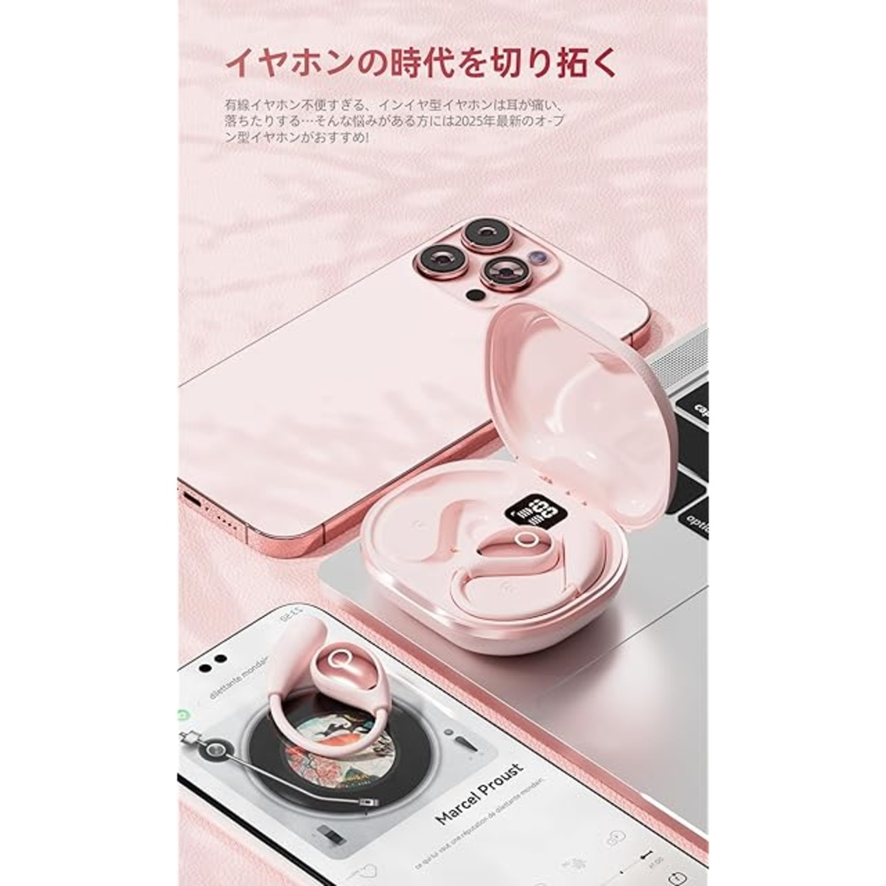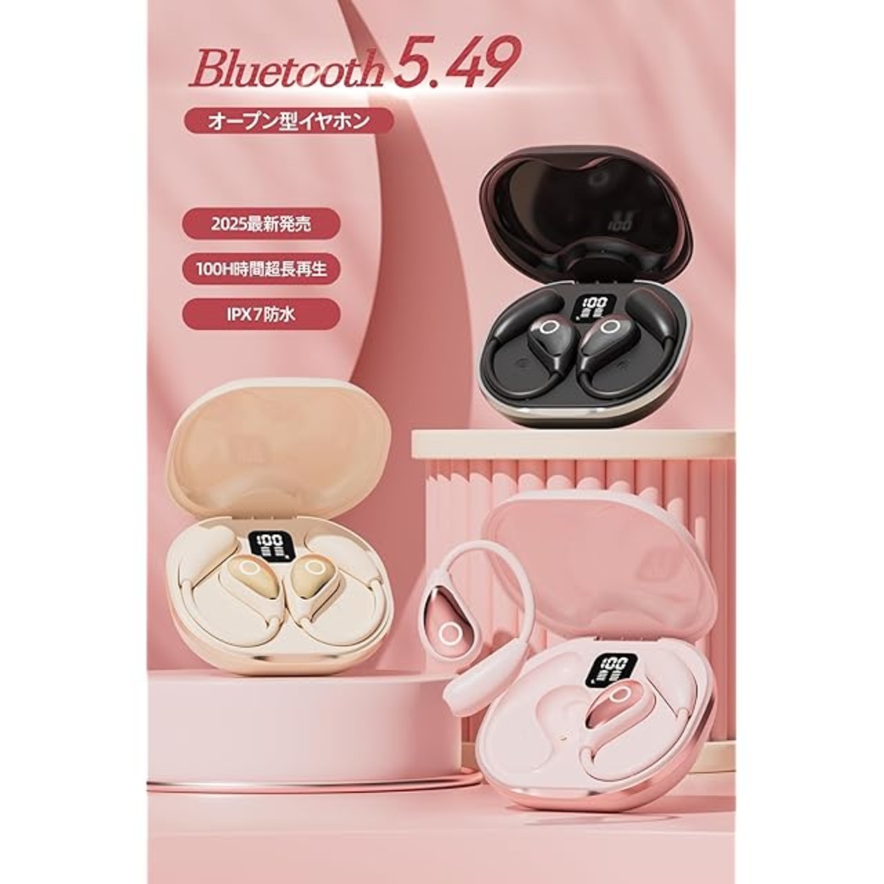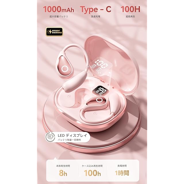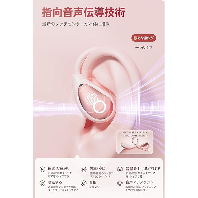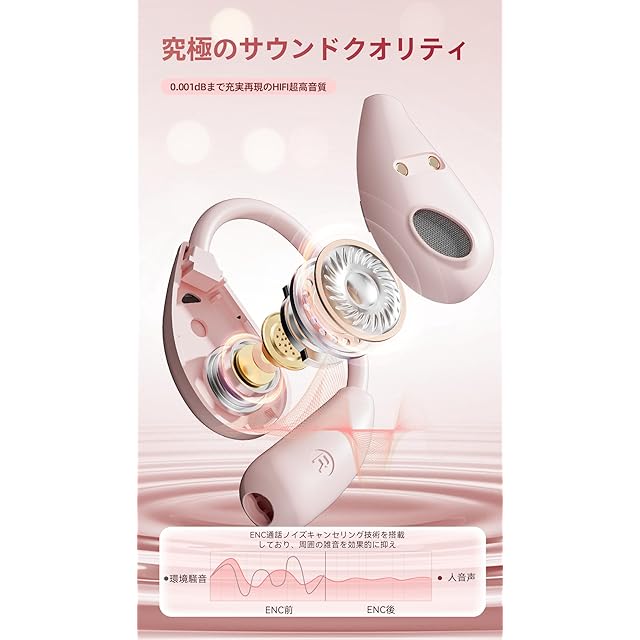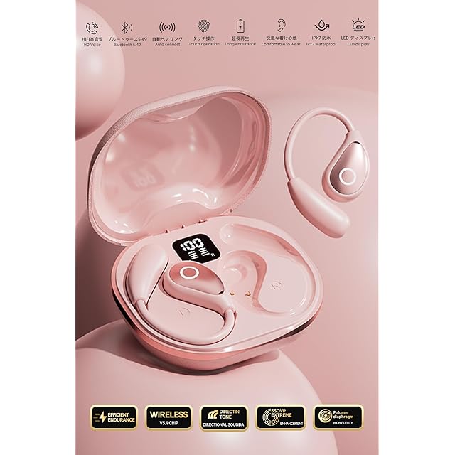 商品名:イヤホン bluetooth ワイヤレスイヤホン【2025年最先端 オープンイヤーヘッドホン】業界トップ Hi-Fi音質Bluetooth5.49 瞬時接続 ブルートゥースイヤホン 最大100時間再生 骨伝導イヤホンの革新 空気伝導 耳掛け式 耳を塞がない マイク付き 音漏れ抑制 超軽量 LED ディスプレイ残量表示 IPX7防水 通勤/通学/スポーツ/ゲーム/WEB会議(ピンク)
