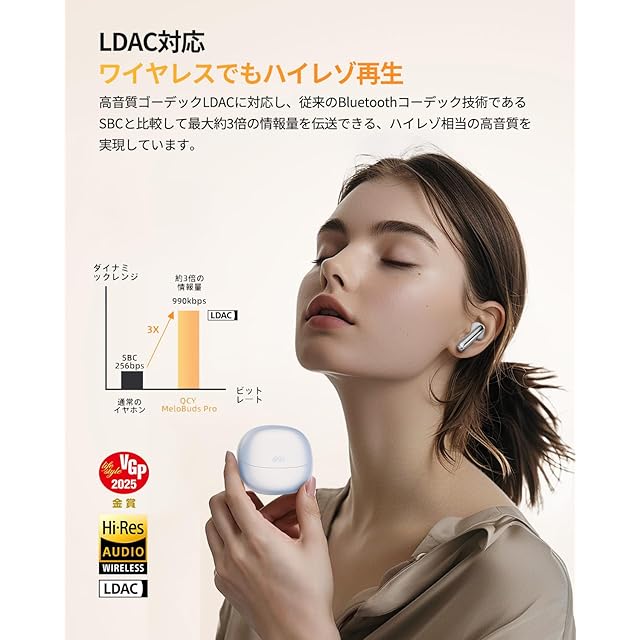 商品名:【VGP 2025 金賞】QCY MeloBuds Pro ワイヤレスイヤホン ノイズキャンセリング ハイレゾ LDAC対応イヤフォン 360°空間オーディオ Bluetooth5.3 外音取り込みモード 装着検出機能 マルチポイント接続 クリアな通話 低遅延ゲームモード 最大34時間再生 専用アプリ対応 IPX5防水 技適認証取得 ブルートゥースイヤホン ホワイト