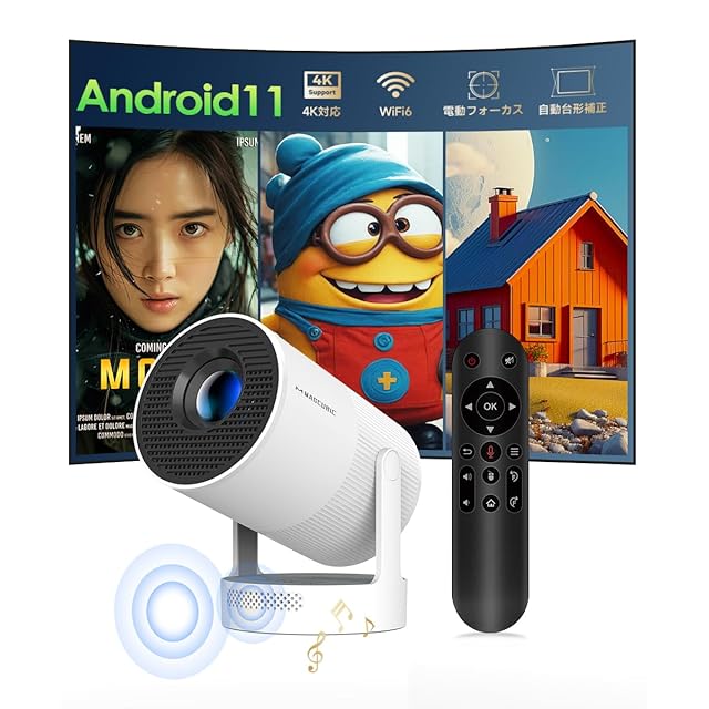プロジェクター 家庭用【電動フォーカス・HiFiスピーカー】Magcubic プロジェクター 小型 Android TV搭載 180°回転 天井投影 20000LM ぷろじえくたー 4K対応 Wi-Fi6 Bluetooth5.4 自動台形補正 ズーム機能 短距離投影 一人暮らし ホームプロジェクター スマホ/タブレット/ラップトップ/TV Stick/USBドライブ/PS機など対応(白)
