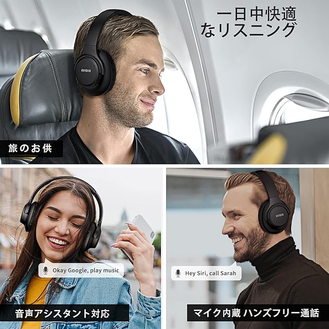 【幅広い互換性】4sマルチファンクションボタンを押すだけで、ヘッドセットはペアリングの準備が整います。KVIDIO Bluetoothオーバーイヤーヘッドフォンは、3.5mmプラグを持つすべてのBluetoothデバイスまたはケーブルに対応しています。 マイクを内蔵しているので、テレビ番組やPCゲームを楽しんだり、ハンズフリー通話やfacetimeビデオをスムーズに行うことができます。