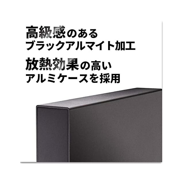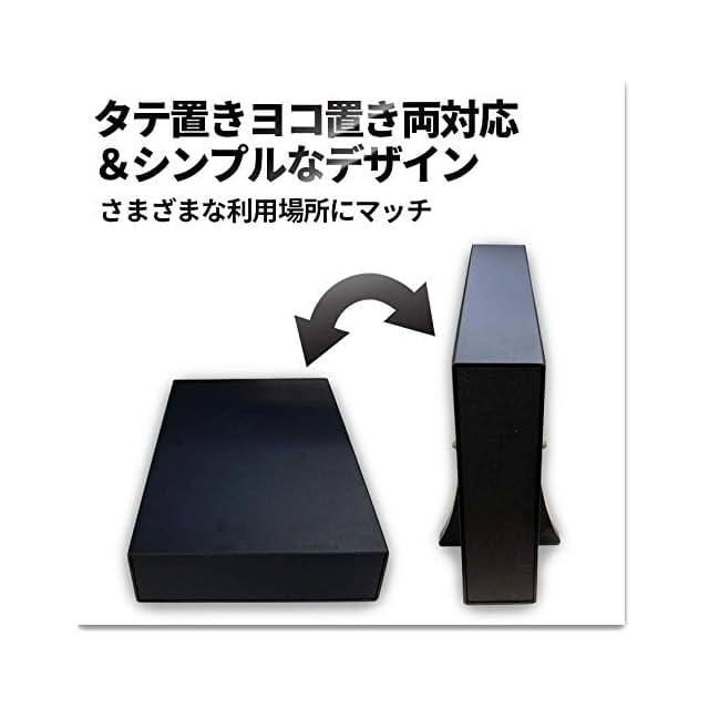 シンプルなデザイン フラットな表面に、ブラックアルマイト加工を施したアルミケース*を使用。タテ・ヨコ両方の置き方やファンレス動作設計により、様々な置き場所にマッチ。