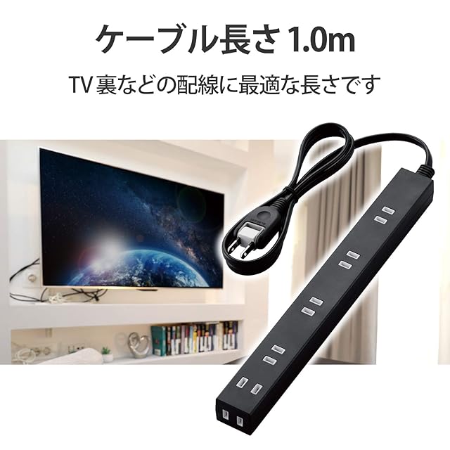 商品名:エレコム 電源タップ ACアダプタが5つ挿せる幅広コンセント 6個口 1m ブラック T-NSL-2610BK